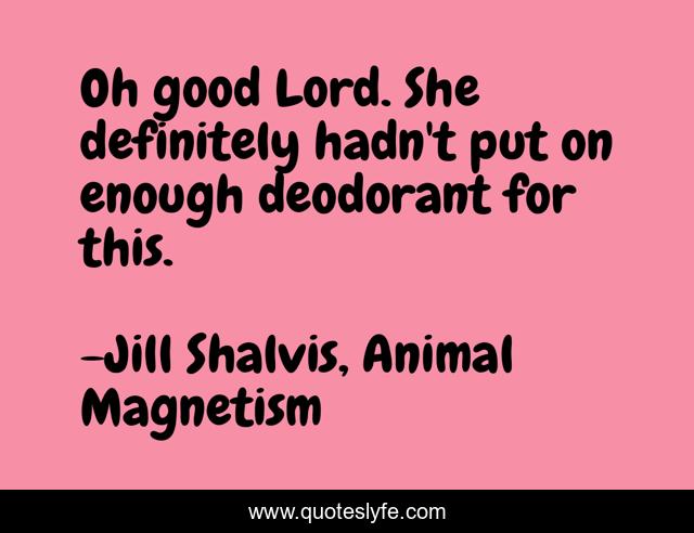 This page presents the quote "Oh good Lord. She definitely hadn't put on enough deodorant for this.". Author of this quote is Jill Shalvis, Animal Magnetism. .