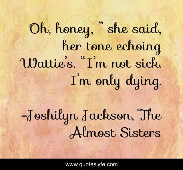This page presents the quote "Oh, honey, ” she said, her tone echoing Wattie’s. “I’m not sick. I’m only dying.". Author of this quote is Joshilyn Jackson, The Almost Sisters. .