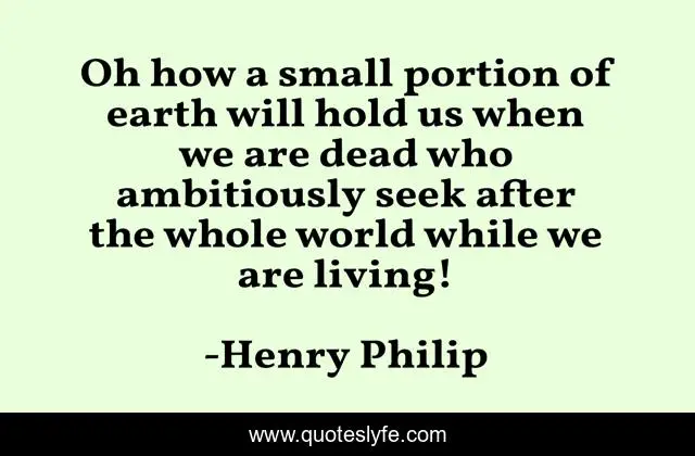 This page presents the quote "Oh how a small portion of earth will hold us when we are dead who ambitiously seek after the whole world while we are living!". Author of this quote is Henry Philip. .
