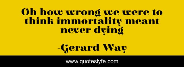This page presents the quote "Oh how wrong we were to think immortality meant never dying". Author of this quote is Gerard Way. This quote is about immortality, death-and-dying, fame,.