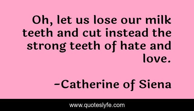 This page presents the quote "Oh, let us lose our milk teeth and cut instead the strong teeth of hate and love.". Author of this quote is Catherine of Siena. This quote is about strength-of-spirit, feminism,.