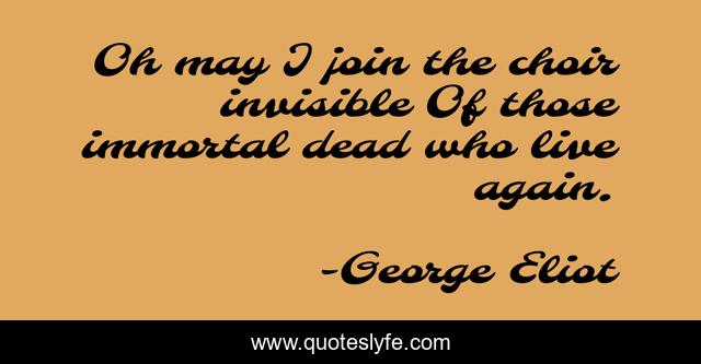 This page presents the quote "Oh may I join the choir invisible Of those immortal dead who live again.". Author of this quote is George Eliot. .