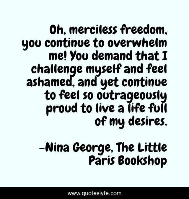 "Nina George, The Little Paris Bookshop Quotes." Quoteslyfe.com, 2025. Mon. 08 Dec. 2025. <https://www.quoteslyfe.com/quote/Oh-merciless-freedom-you-continue-to-overwhelm-54882>.