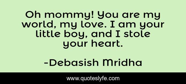 This page presents the quote "Oh mommy! You are my world, my love. I am your little boy, and I stole your heart.". Author of this quote is Debasish Mridha. This quote is about motherhood, philosophy, debasish-mridha, quotes, debasish-mridha-md, inspirational, enthusiasm, i-stole-your-heart, love-between-a-child-and-mother,.