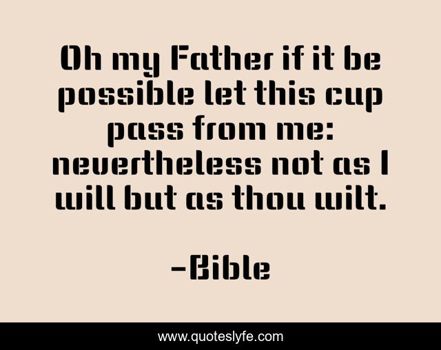 This page presents the quote "Oh my Father if it be possible let this cup pass from me: nevertheless not as I will but as thou wilt.". Author of this quote is Bible. .