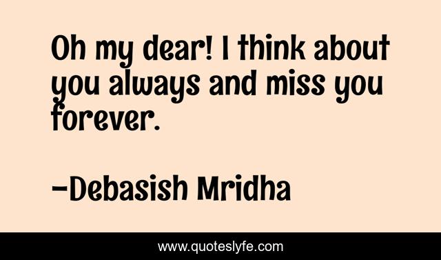 This page presents the quote "Oh my dear! I think about you always and miss you forever.". Author of this quote is Debasish Mridha. This quote is about longing, philosophy, debasish-mridha, i-think-about-you, quotes, inspirational, enthusiasm, debasish-mridha-m-d, i-miss-you,.