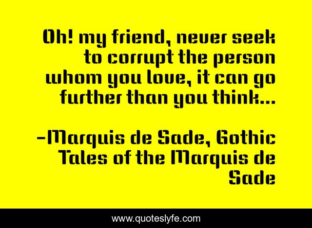 "Marquis de Sade, Gothic Tales of the Marquis de Sade Quotes." Quoteslyfe.com, 2025. Fri. 05 Dec. 2025. <https://www.quoteslyfe.com/quote/Oh-my-friend-never-seek-to-corrupt-185022>.