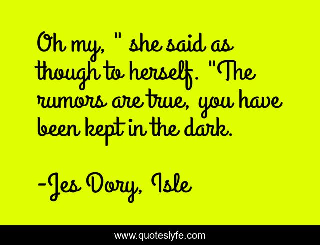This page presents the quote "Oh my, " she said as though to herself. "The rumors are true, you have been kept in the dark.". Author of this quote is Jes Dory, Isle. This quote is about dark-fantasy, mermaids, siren, love, maine-woods, new-adult-paranormal-romance, reading-books, twilight, lady-midnight,.