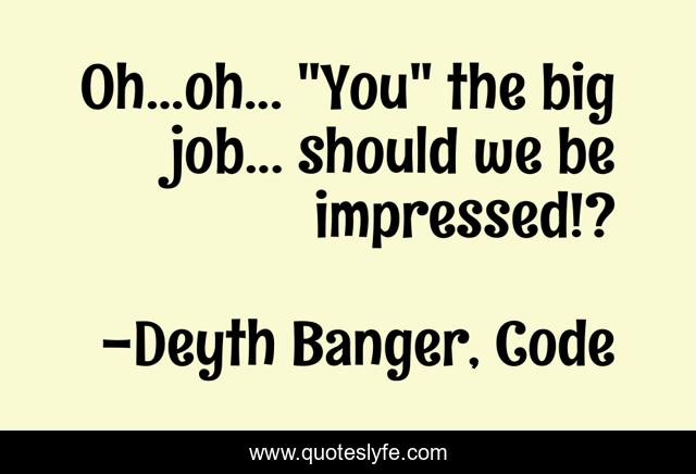 "Deyth Banger, Code Quotes." Quoteslyfe.com, 2025. Sat. 06 Dec. 2025. <https://www.quoteslyfe.com/quote/Oh-oh-You-the-big-job-should-197811>.