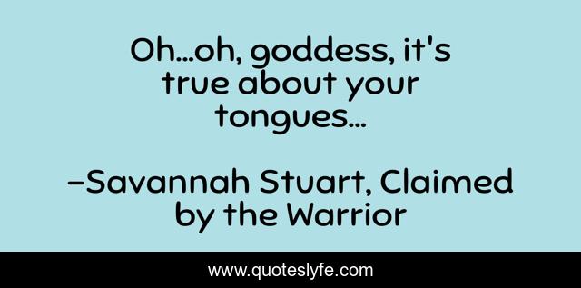 This page presents the quote "Oh...oh, goddess, it's true about your tongues...". Author of this quote is Savannah Stuart, Claimed by the Warrior. This quote is about romance, sci-fi, steamy,.