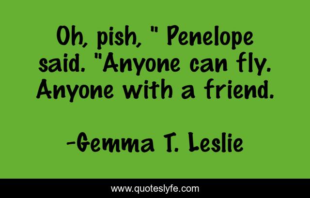 This page presents the quote "Oh, pish, " Penelope said. "Anyone can fly. Anyone with a friend.". Author of this quote is Gemma T. Leslie. .