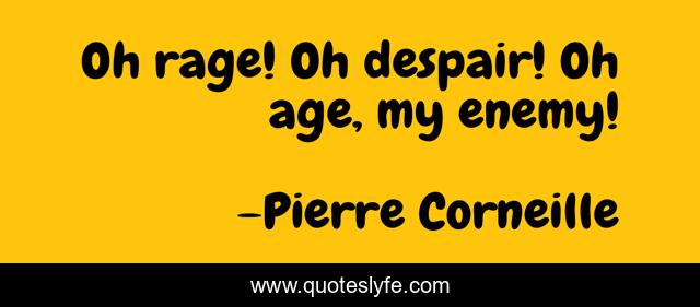 This page presents the quote "Oh rage! Oh despair! Oh age, my enemy!". Author of this quote is Pierre Corneille. This quote is about enemy, despair, rage,.