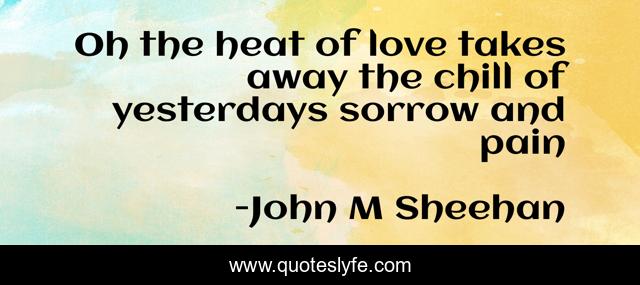 This page presents the quote "Oh the heat of love takes away the chill of yesterdays sorrow and pain". Author of this quote is John M Sheehan. This quote is about love, affection,.
