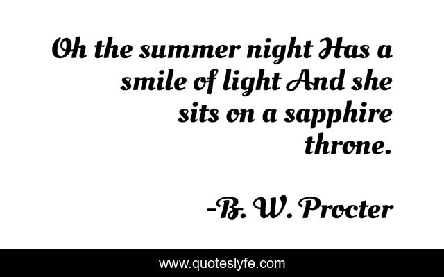 This page presents the quote "Oh the summer night Has a smile of light And she sits on a sapphire throne.". Author of this quote is B. W. Procter. .