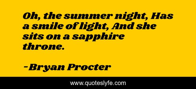 This page presents the quote "Oh, the summer night, Has a smile of light, And she sits on a sapphire throne.". Author of this quote is Bryan Procter. This quote is about smile, light, happiness, night,.