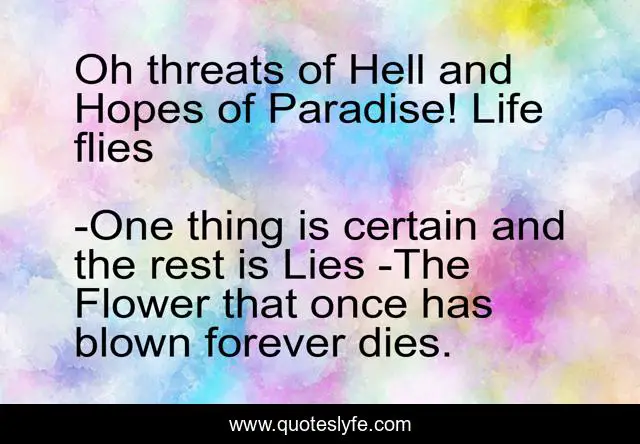 "One thing is certain and the rest is Lies -The Flower that once has blown forever dies. Quotes." Quoteslyfe.com, 2025. Fri. 05 Dec. 2025. <https://www.quoteslyfe.com/quote/Oh-threats-of-Hell-and-Hopes-of-3260>.