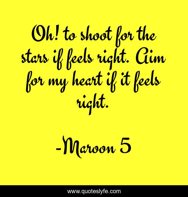 This page presents the quote "Oh! to shoot for the stars if feels right. Aim for my heart if it feels right.". Author of this quote is Maroon 5. This quote is about maroon-5, art, love, science, music, inspirational, enthusiasm, humor, affection,.