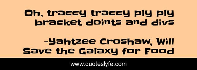 "Yahtzee Croshaw, Will Save the Galaxy for Food Quotes." Quoteslyfe.com, 2025. Sat. 06 Dec. 2025. <https://www.quoteslyfe.com/quote/Oh-traccy-traccy-ply-ply-bracket-doints-248334>.