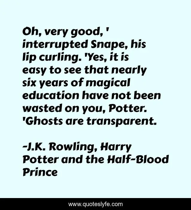 This page presents the quote "Oh, very good, ' interrupted Snape, his lip curling. 'Yes, it is easy to see that nearly six years of magical education have not been wasted on you, Potter. 'Ghosts are transparent.". Author of this quote is J.K. Rowling, Harry Potter and the Half-Blood Prince. .