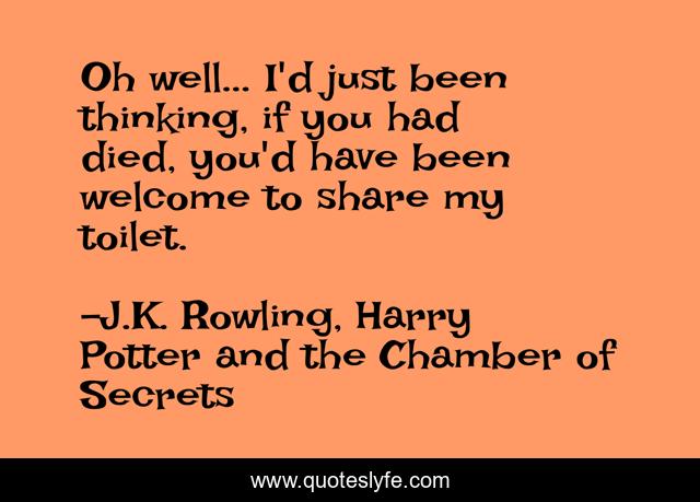 This page presents the quote "Oh well... I'd just been thinking, if you had died, you'd have been welcome to share my toilet.". Author of this quote is J.K. Rowling, Harry Potter and the Chamber of Secrets. This quote is about flirting, humor,.