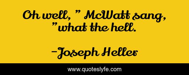 This page presents the quote "Oh well, " McWatt sang, "what the hell.". Author of this quote is Joseph Heller. .
