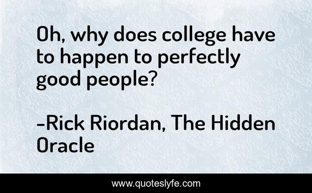 "Rick Riordan, The Hidden Oracle Quotes." Quoteslyfe.com, 2025. Mon. 08 Dec. 2025. <https://www.quoteslyfe.com/quote/Oh-why-does-college-have-to-happen-244761>.