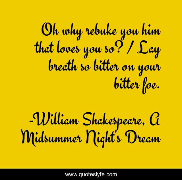 "William Shakespeare, A Midsummer Night's Dream Quotes." Quoteslyfe.com, 2025. Sat. 06 Dec. 2025. <https://www.quoteslyfe.com/quote/Oh-why-rebuke-you-him-that-loves-251718>.
