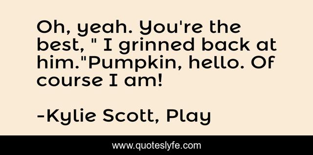 This page presents the quote "Oh, yeah. You're the best, " I grinned back at him."Pumpkin, hello. Of course I am!". Author of this quote is Kylie Scott, Play. This quote is about play, mal,.
