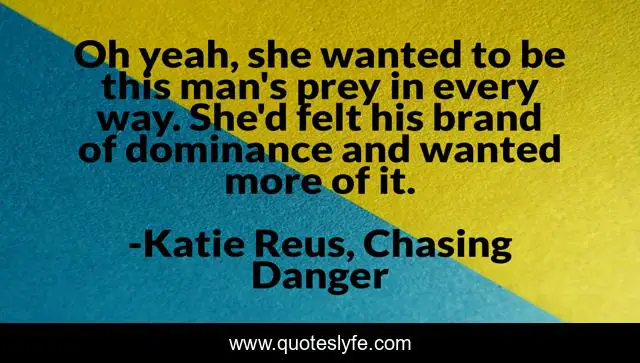 This page presents the quote "Oh yeah, she wanted to be this man's prey in every way. She'd felt his brand of dominance and wanted more of it.". Author of this quote is Katie Reus, Chasing Danger. This quote is about military-romance, romantic-suspense,.