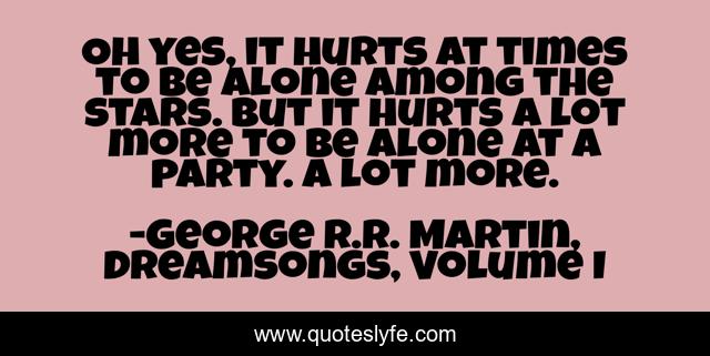 This page presents the quote "Oh yes, it hurts at times to be alone among the stars. But it hurts a lot more to be alone at a party. A lot more.". Author of this quote is George R.R. Martin, Dreamsongs, Volume I. .