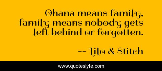 "- Lilo & Stitch Quotes." Quoteslyfe.com, 2025. Sun. 07 Dec. 2025. <https://www.quoteslyfe.com/quote/Ohana-means-family-family-means-nobody-gets-194069>.