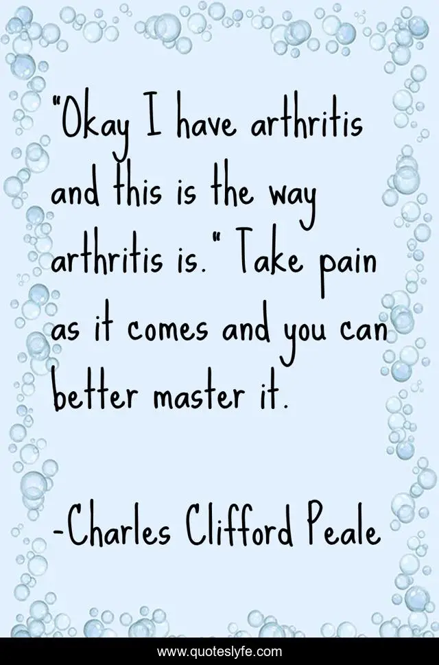 "Charles Clifford Peale Quotes." Quoteslyfe.com, 2025. Fri. 05 Dec. 2025. <https://www.quoteslyfe.com/quote/Okay-I-have-arthritis-and-this-is-259200>.