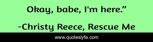 "Christy Reece, Rescue Me Quotes." Quoteslyfe.com, 2025. Sat. 06 Dec. 2025. <https://www.quoteslyfe.com/quote/Okay-babe-I-m-here-18629>.