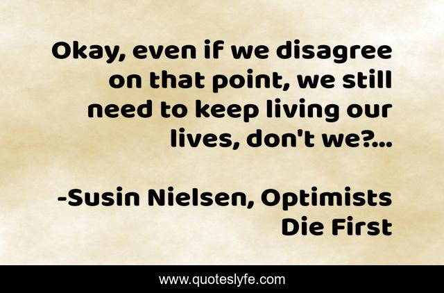 "Susin Nielsen, Optimists Die First Quotes." Quoteslyfe.com, 2025. Sat. 06 Dec. 2025. <https://www.quoteslyfe.com/quote/Okay-even-if-we-disagree-on-that-105152>.