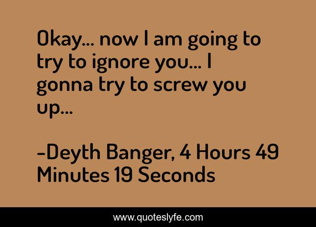 This page presents the quote "Okay... now I am going to try to ignore you... I gonna try to screw you up...". Author of this quote is Deyth Banger, 4 Hours 49 Minutes 19 Seconds. This quote is about ignore, screw-up, wtf,.