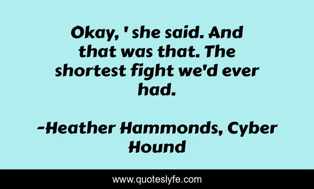 "Heather Hammonds, Cyber Hound Quotes." Quoteslyfe.com, 2025. Sat. 06 Dec. 2025. <https://www.quoteslyfe.com/quote/Okay-she-said-And-that-was-that-121750>.