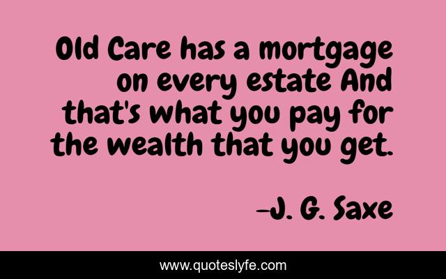 This page presents the quote "Old Care has a mortgage on every estate And that's what you pay for the wealth that you get.". Author of this quote is J. G. Saxe. .