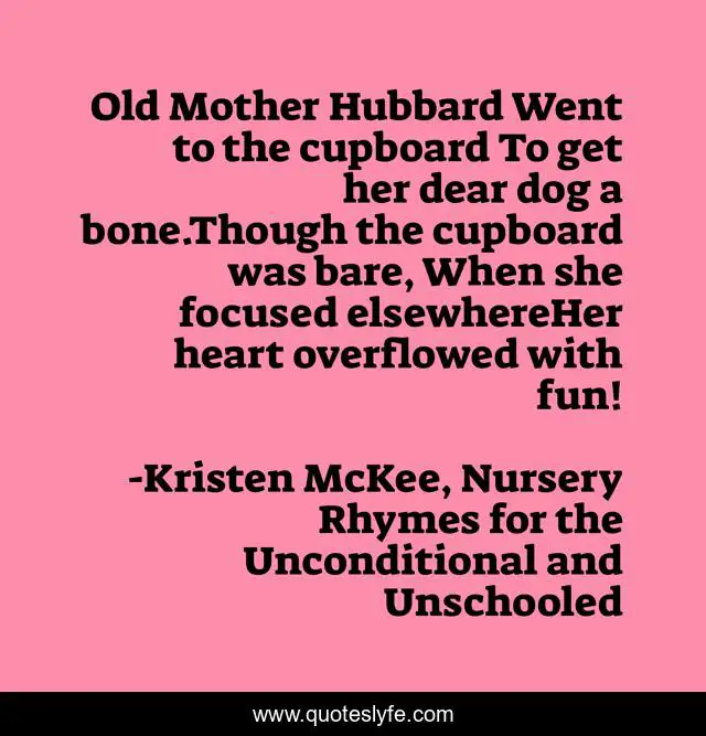 "Kristen McKee, Nursery Rhymes for the Unconditional and Unschooled Quotes." Quoteslyfe.com, 2025. Mon. 08 Dec. 2025. <https://www.quoteslyfe.com/quote/Old-Mother-Hubbard-Went-to-the-cupboard-214779>.