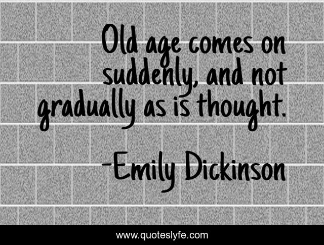 This page presents the quote "Old age comes on suddenly, and not gradually as is thought.". Author of this quote is Emily Dickinson. This quote is about thought, old, old age,.