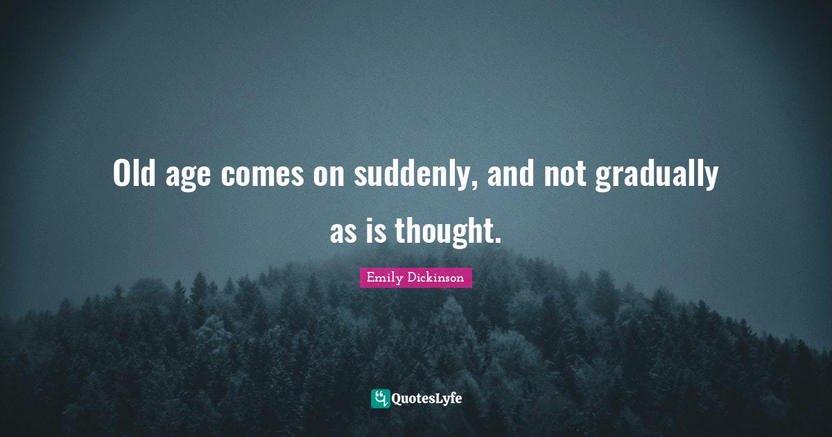 "Emily Dickinson Quotes." Quoteslyfe.com, 2026. Fri. 20 Mar. 2026. <https://www.quoteslyfe.com/quote/Old-age-comes-on-suddenly-and-not-296672>.