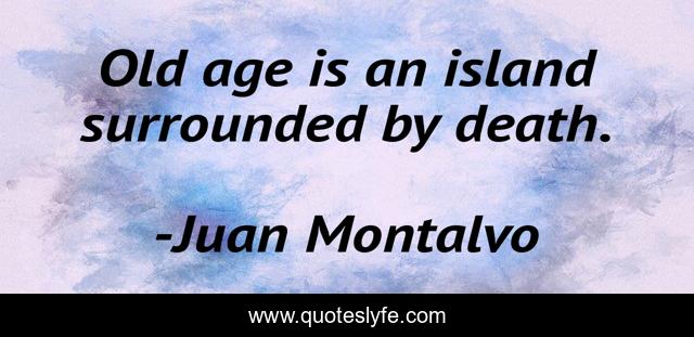 This page presents the quote "Old age is an island surrounded by death.". Author of this quote is Juan Montalvo. This quote is about aging, age, old,.