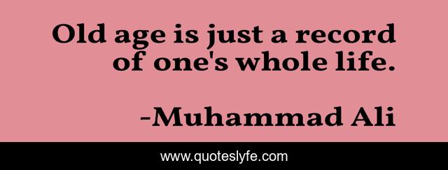 This page presents the quote "Old age is just a record of one's whole life.". Author of this quote is Muhammad Ali. This quote is about life, old, old age,.
