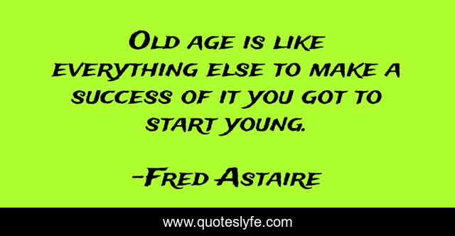 This page presents the quote "Old age is like everything else to make a success of it you got to start young.". Author of this quote is Fred Astaire. This quote is about age, birthdays,.