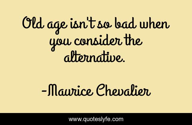 This page presents the quote "Old age isn't so bad when you consider the alternative.". Author of this quote is Maurice Chevalier. This quote is about bad, old age,.