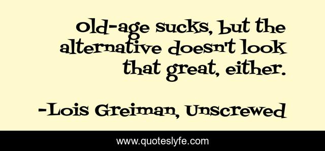 This page presents the quote "Old-age sucks, but the alternative doesn't look that great, either.". Author of this quote is Lois Greiman, Unscrewed. This quote is about mystery, chick-lit, humor,.