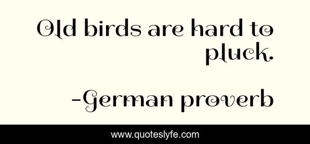 "German proverb Quotes." Quoteslyfe.com, 2025. Tue. 09 Dec. 2025. <https://www.quoteslyfe.com/quote/Old-birds-are-hard-to-pluck-259998>.