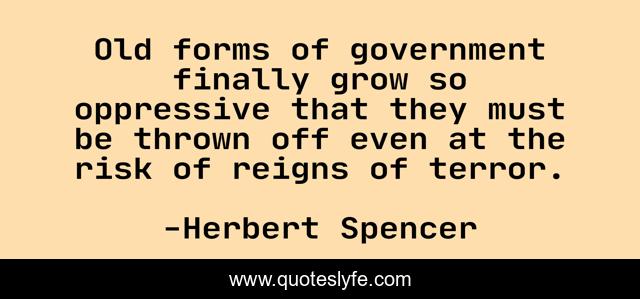This page presents the quote "Old forms of government finally grow so oppressive that they must be thrown off even at the risk of reigns of terror.". Author of this quote is Herbert Spencer. This quote is about old, risk, grow,.