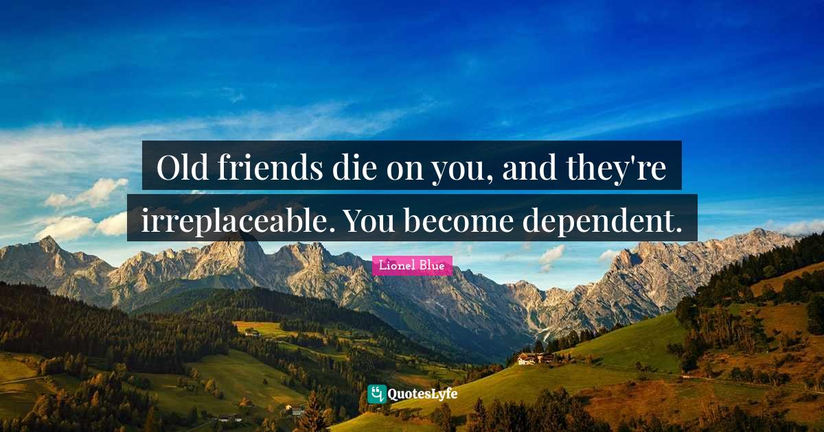 This page presents the quote "Old friends die on you, and they're irreplaceable. You become dependent.". Author of this quote is Lionel Blue. This quote is about old friends, dependent, irreplaceable,.