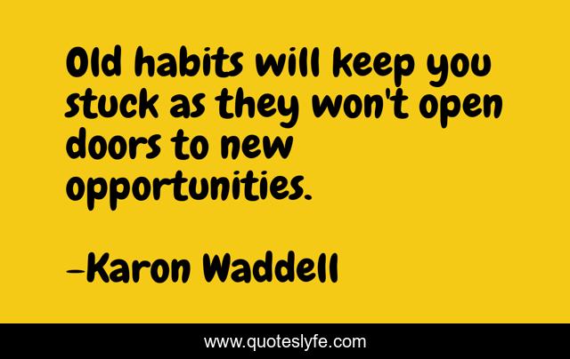 This page presents the quote "Old habits will keep you stuck as they won't open doors to new opportunities.". Author of this quote is Karon Waddell. This quote is about habits-of-action, habits, opportunity, habit, quote-about-life,.