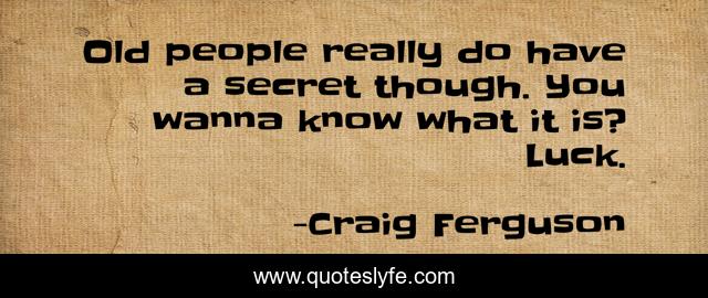 This page presents the quote "Old people really do have a secret though. You wanna know what it is? Luck.". Author of this quote is Craig Ferguson. This quote is about age, secret, luck,.